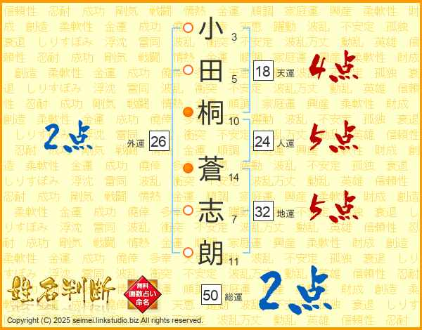 小田桐蒼志朗さんの人運は24画の5点!