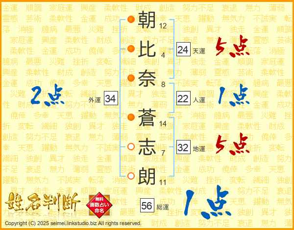 朝比奈蒼志朗さんの総運は56画の1点!