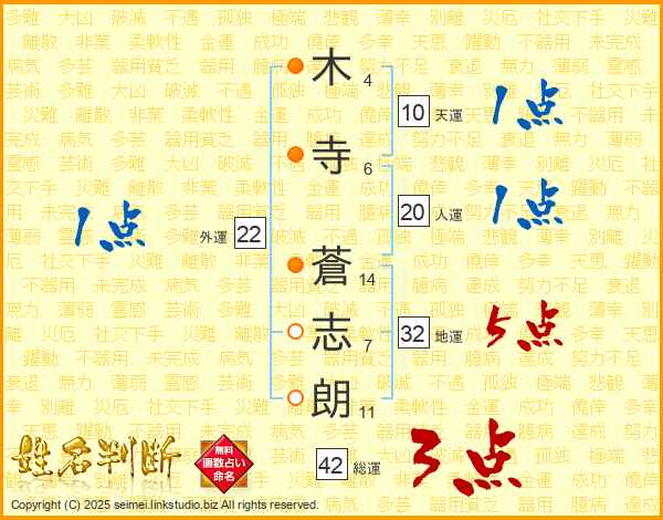 木寺蒼志朗さんの地運は32画の5点!