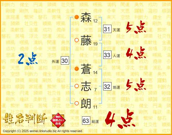 森(12画)藤(19画) 蒼(14画)志(7画)朗(11画)