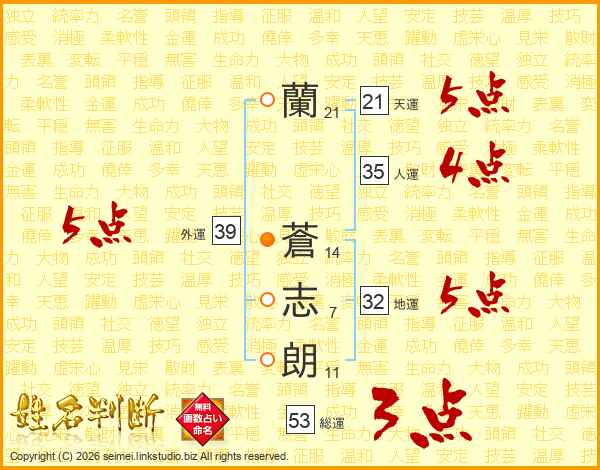 蘭蒼志朗さんの外運は39画の5点!