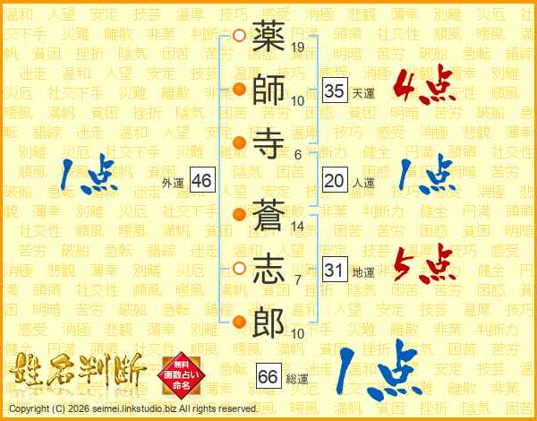 薬師寺蒼志郎さんの総運は66画の1点!