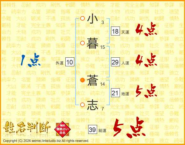小暮蒼志さんの総運は39画の5点!