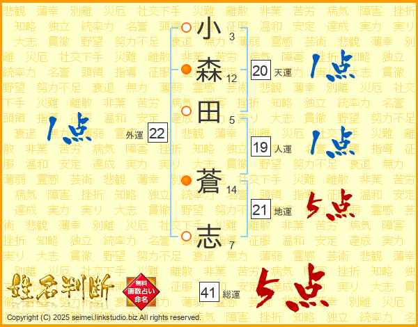 小(3画)森(12画)田(5画) 蒼(14画)志(7画)