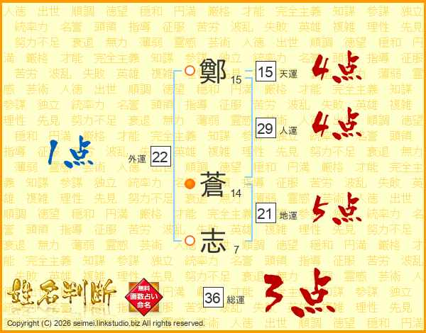 鄭(15画) 蒼(14画)志(7画)