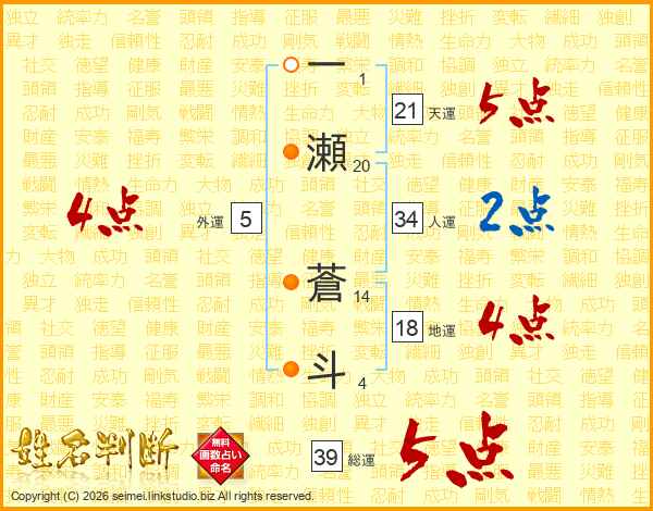 一(1画)瀬(20画) 蒼(14画)斗(4画)