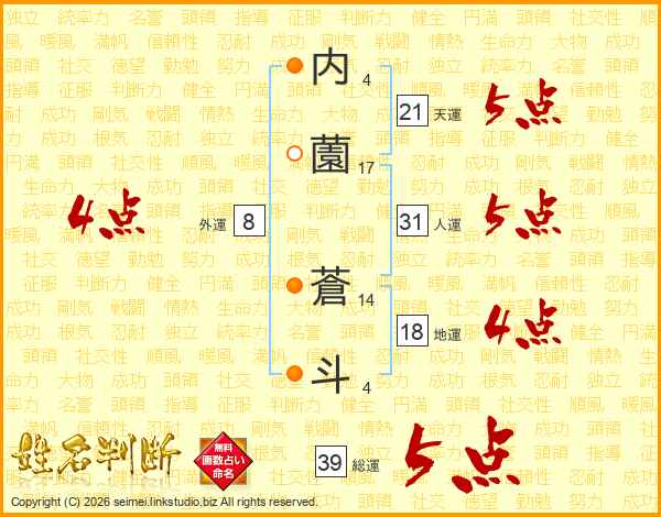 内薗蒼斗さんの総運は39画の5点!