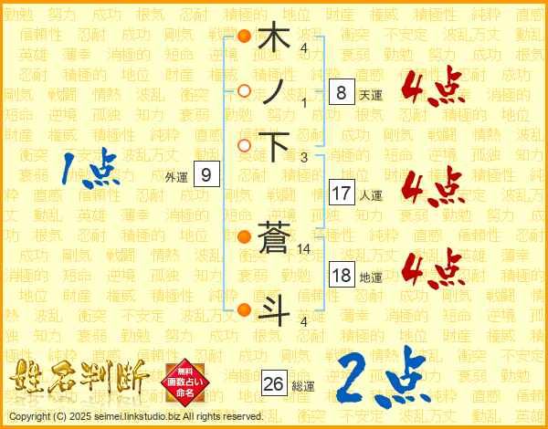木(4画)ノ(1画)下(3画) 蒼(14画)斗(4画)