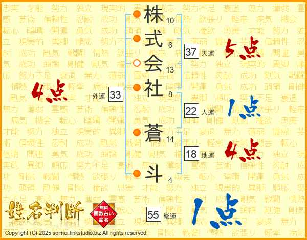 株(10画)式(6画)会(13画)社(8画) 蒼(14画)斗(4画)