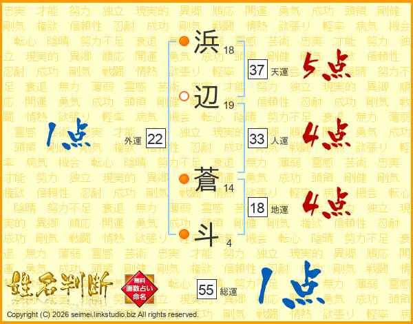 浜(18画)辺(19画) 蒼(14画)斗(4画)
