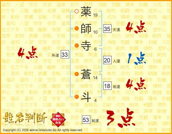 薬師寺蒼斗さんの外運は33画の4点!