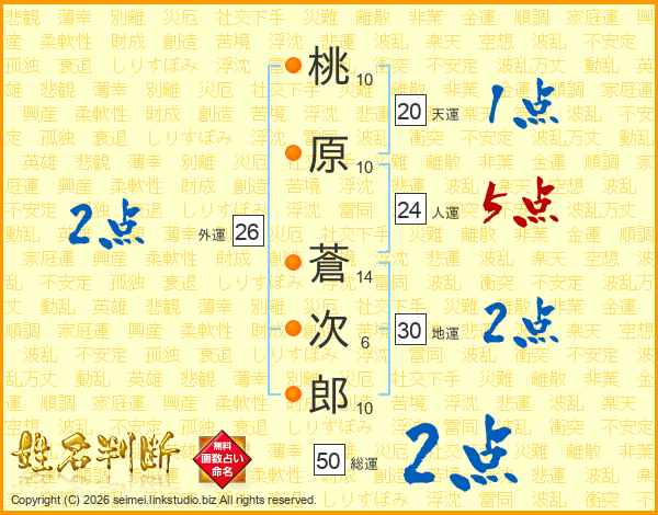 桃原蒼次郎さんの人運は24画の5点!