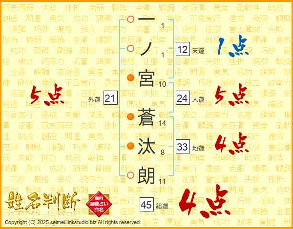 一ノ宮蒼汰朗さんの総運は45画の4点!