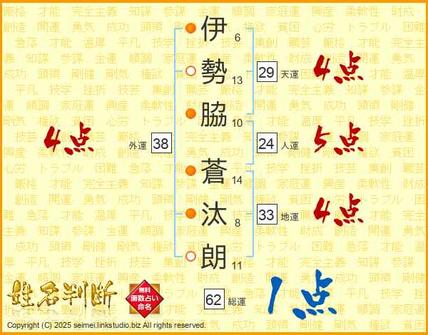 伊勢脇蒼汰朗さんの天運は29画の4点!