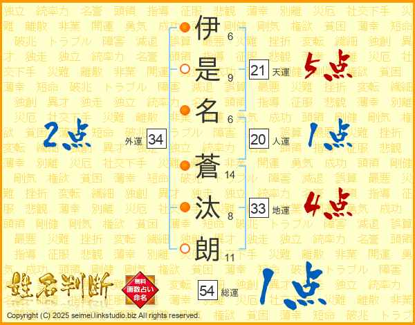 伊是名蒼汰朗さんの天運は21画の5点!