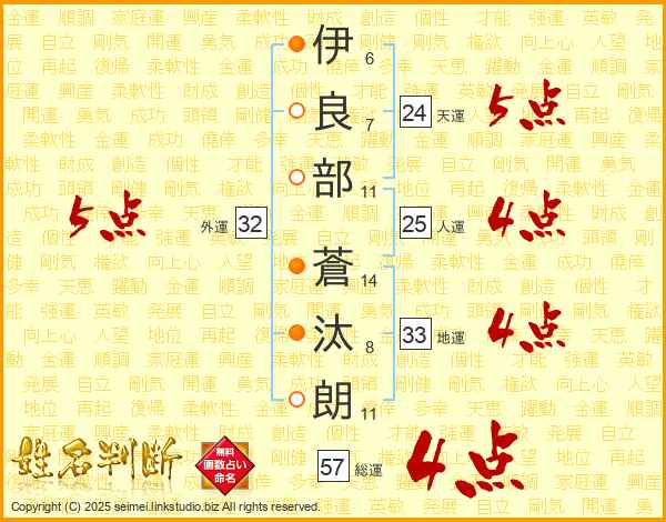 伊良部蒼汰朗さんの総運は57画の4点!