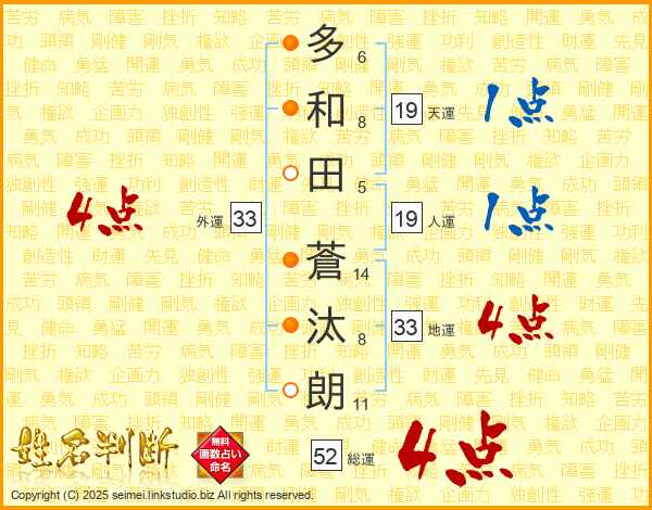 多和田蒼汰朗さんの総運は52画の4点!