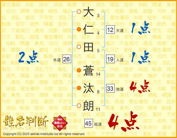 大仁田蒼汰朗さんの総運は45画の4点!