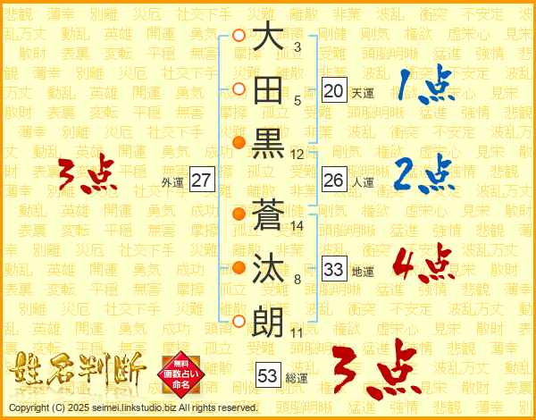 大田黒蒼汰朗さんの総運は53画の3点!