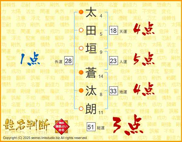 太田垣蒼汰朗さんの地運は33画の4点!