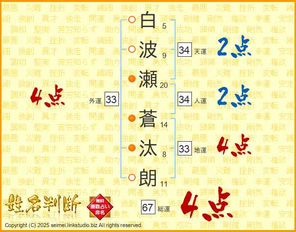 白波瀬蒼汰朗さんの総運は67画の4点!