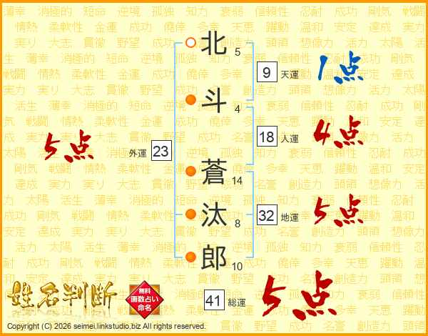 北(5画)斗(4画) 蒼(14画)汰(8画)郎(10画)