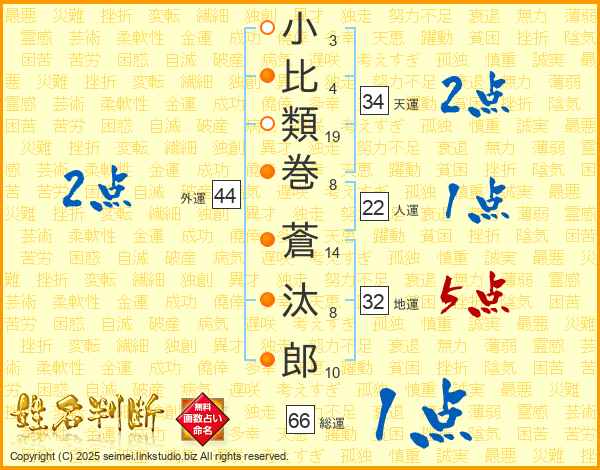 小比類巻蒼汰郎さんの総運は66画の1点!