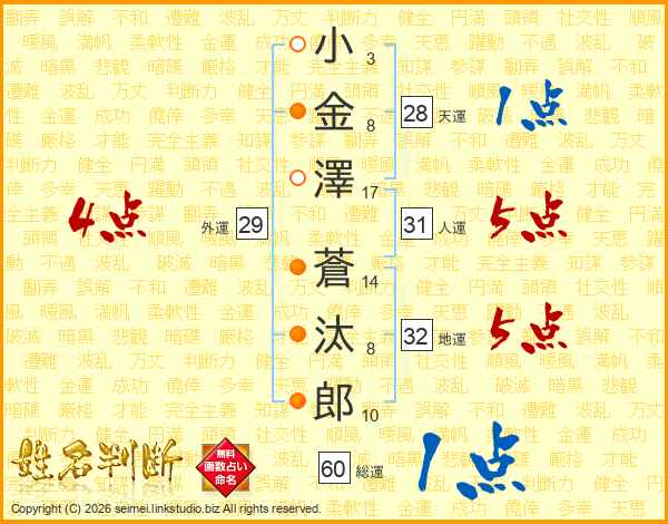 小金澤蒼汰郎さんの人運は31画の5点!