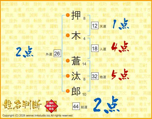 押(8画)木(4画) 蒼(14画)汰(8画)郎(10画)