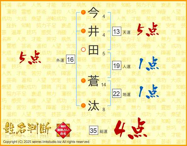 今(4画)井(4画)田(5画) 蒼(14画)汰(8画)