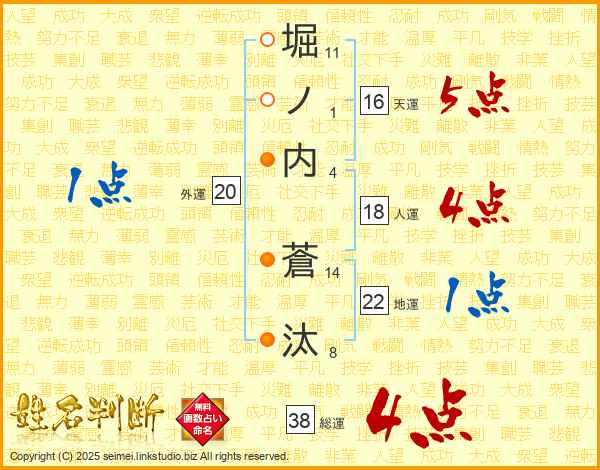 堀(11画)ノ(1画)内(4画) 蒼(14画)汰(8画)