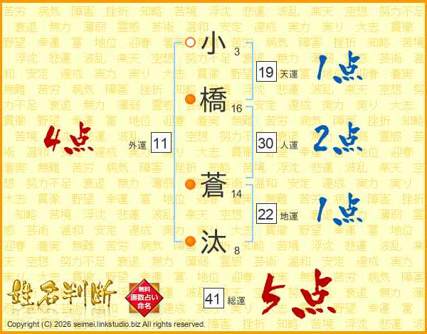 小橋蒼汰さんの総運は41画の5点!