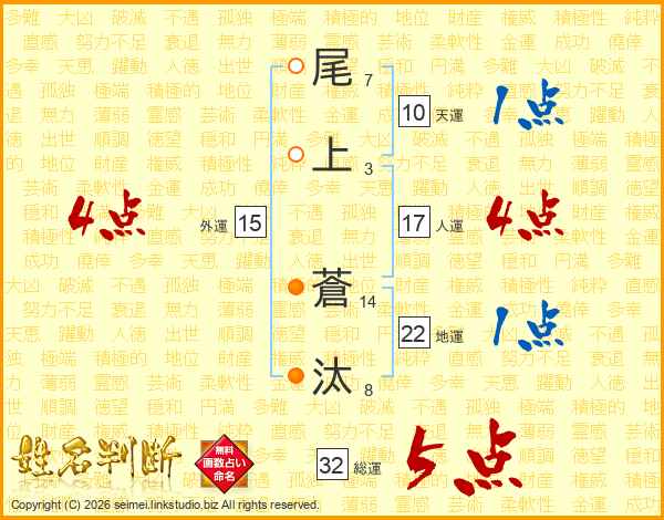 尾上蒼汰さんの総運は32画の5点!