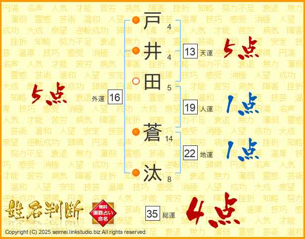 戸(4画)井(4画)田(5画) 蒼(14画)汰(8画)