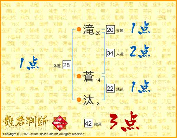 滝蒼汰さんの天運は20画の1点!