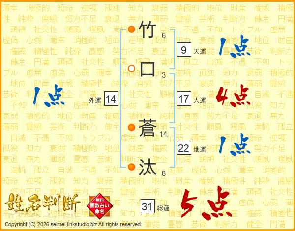 竹口蒼汰さんの総運は31画の5点!