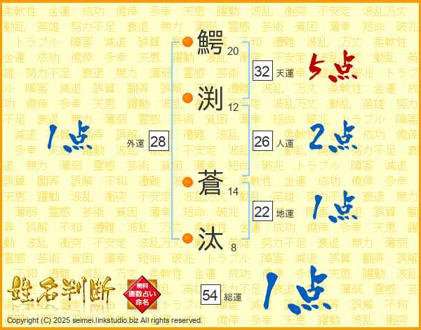 鰐渕蒼汰さんの総運は54画の1点!