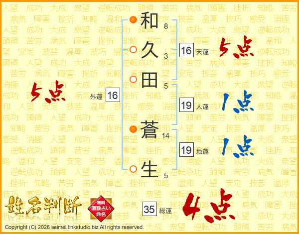 和(8画)久(3画)田(5画) 蒼(14画)生(5画)