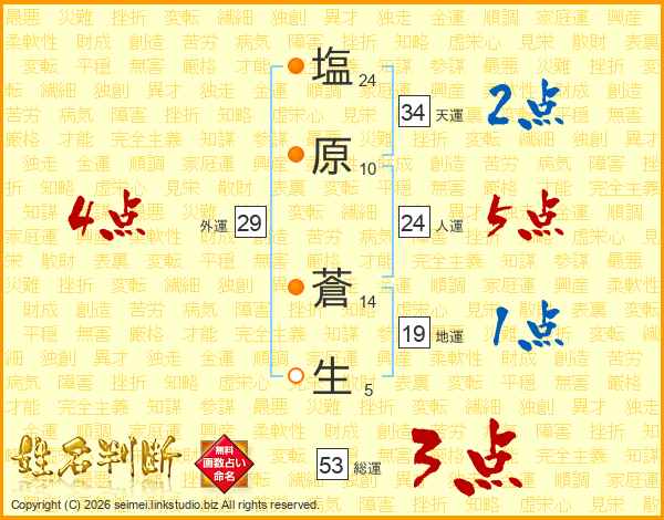 塩原蒼生さんの総運は53画の3点!