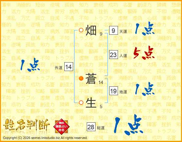 畑蒼生さんの外運は14画の1点!