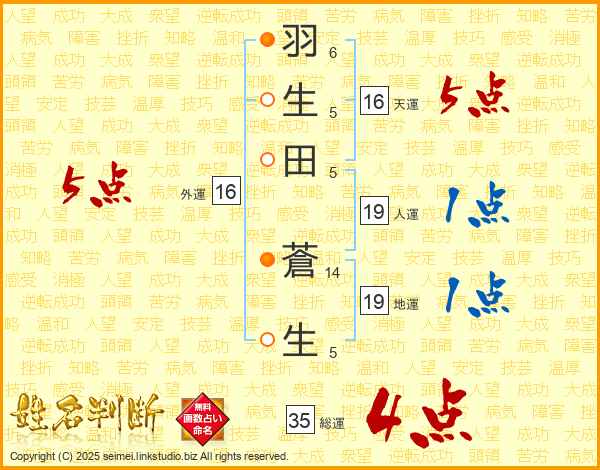 羽生田蒼生さんの総運は35画の4点!