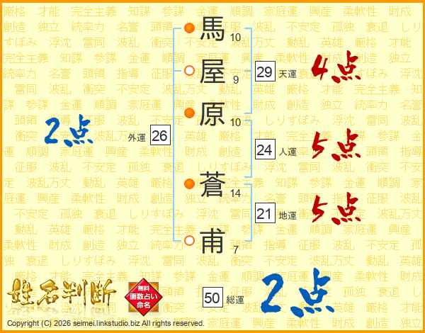 馬屋原蒼甫さんの人運は24画の5点!