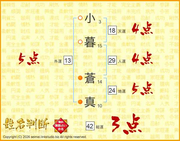 小暮蒼真さんの総運は42画の3点!