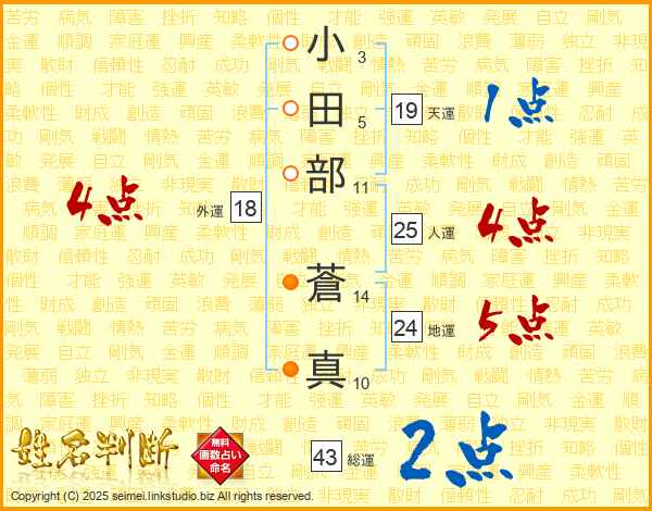 小田部蒼真さんの総運は43画の2点!