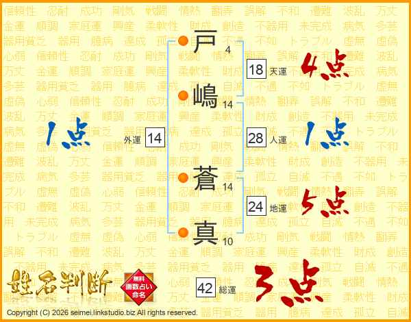 戸(4画)嶋(14画) 蒼(14画)真(10画)
