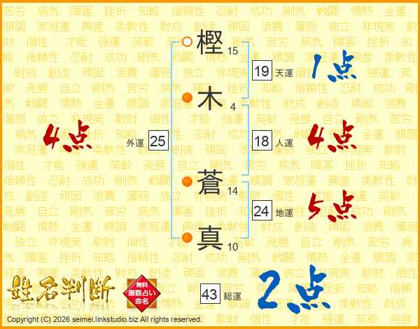 樫(15画)木(4画) 蒼(14画)真(10画)