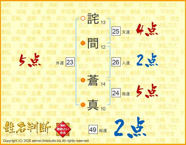 詫間蒼真さんの総運は49画の2点!