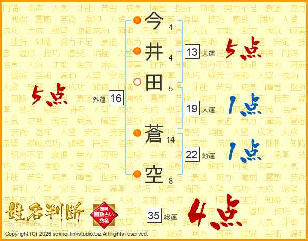 今(4画)井(4画)田(5画) 蒼(14画)空(8画)