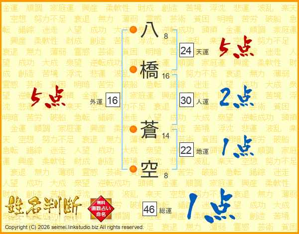 八橋蒼空さんの総運は46画の1点!