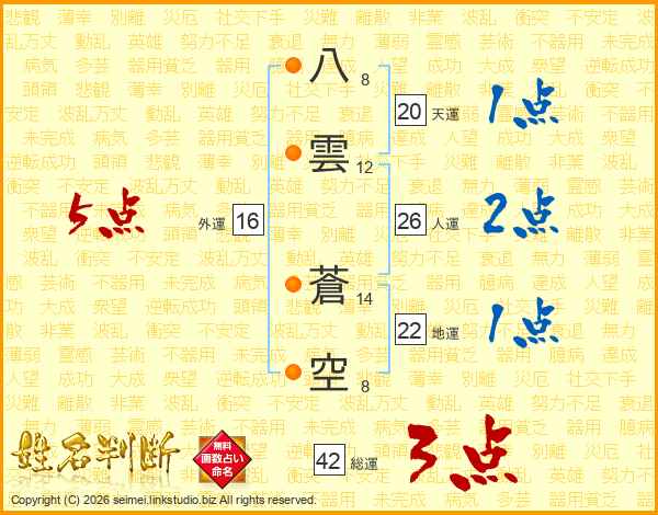八雲蒼空さんの総運は42画の3点!
